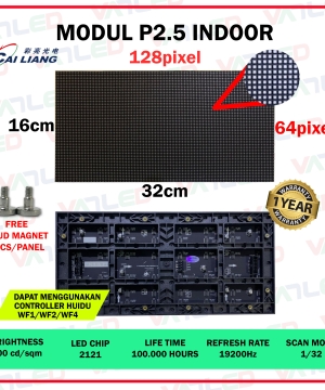 Beranda » MODUL / PANEL FULL COLOR (RGB) » MODUL P2,5 SMD RGB FULL COLOR INDOOR CAILIANG 1920Hz