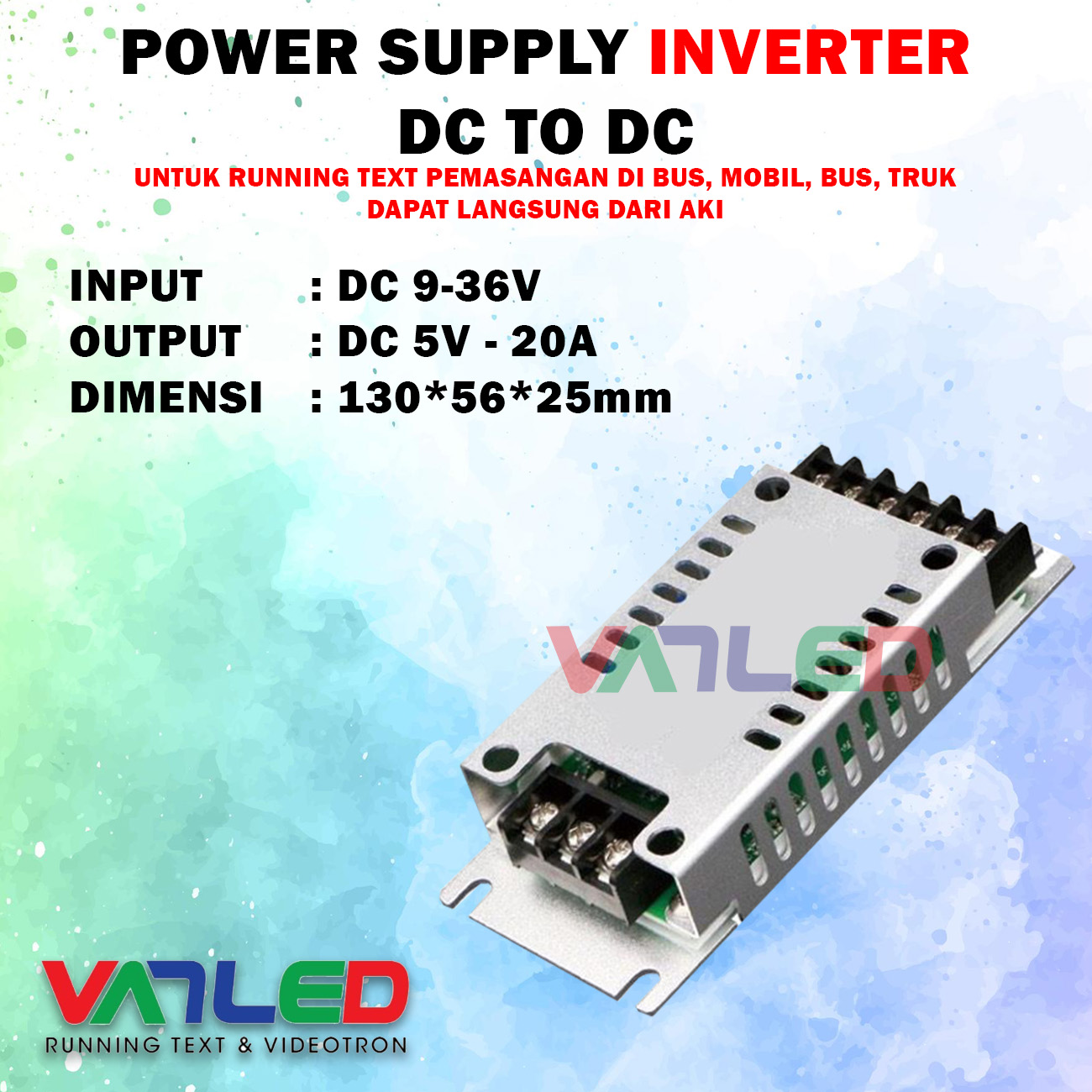 Deskripsi POWER SUPPLY INPUT DC 9 – 36 VOLT OUTPUT 5 VOLT 20 AMPERE UNTUK MOBIL BUS TRUK – 5V – 20A