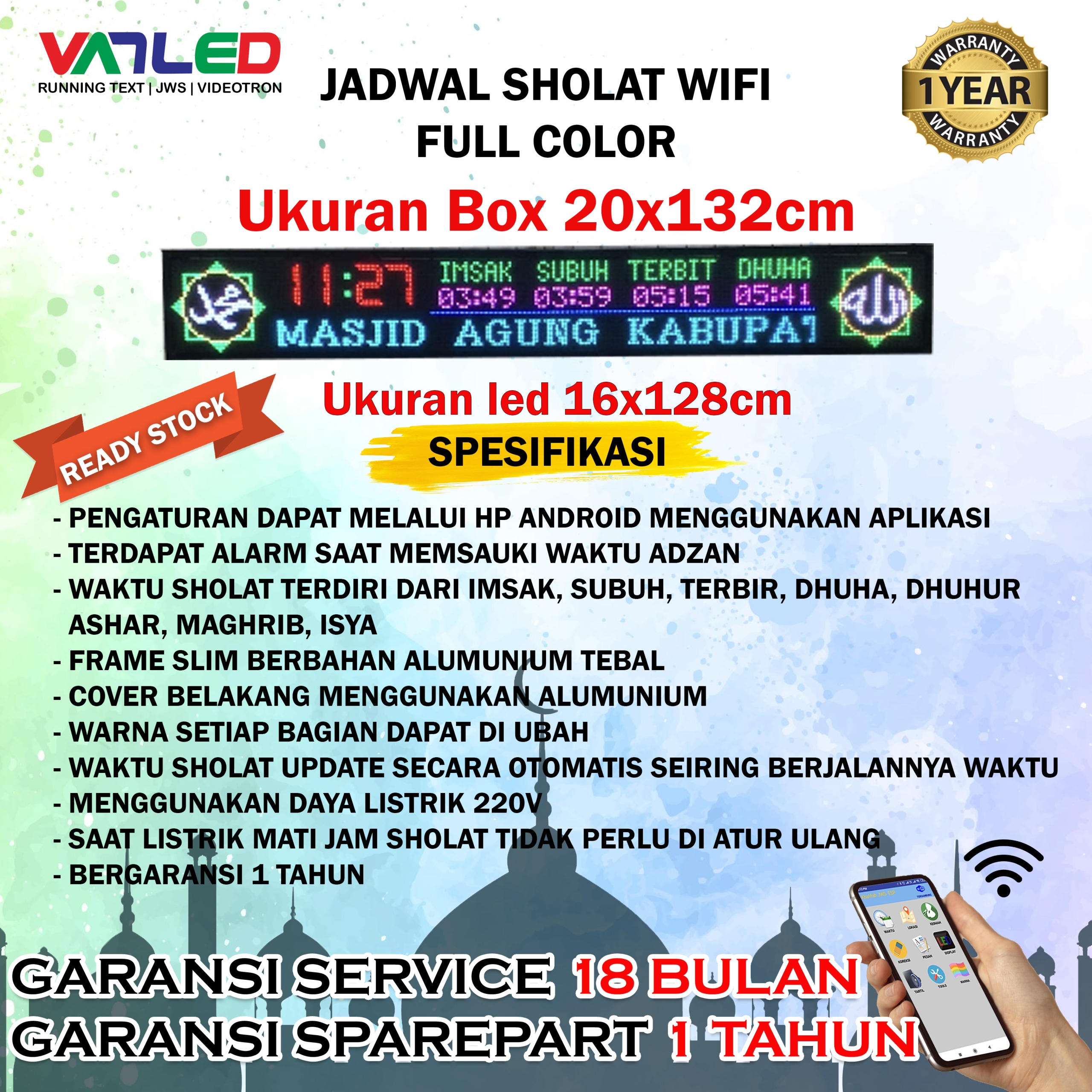Kategori : JAM SHOLAT P5 RGB FULLCOLOR, UNIT JADI JWS