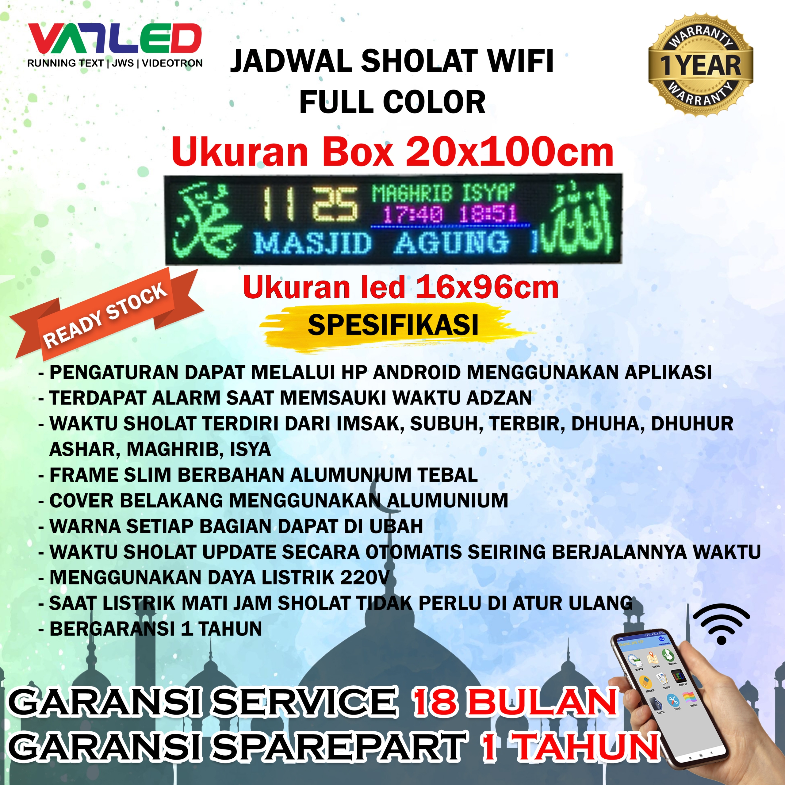 JAM SHOLAT DIGITAL OTOMATIS – PANEL P5 LED FULL COLOR
