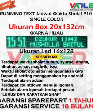 Deskripsi Jam Sholat Masjid Running Text JWS Jadwal Shalat Solat Digital Masjid P10 Single Color 16X128 Pixel 20X132 Cm Tartil