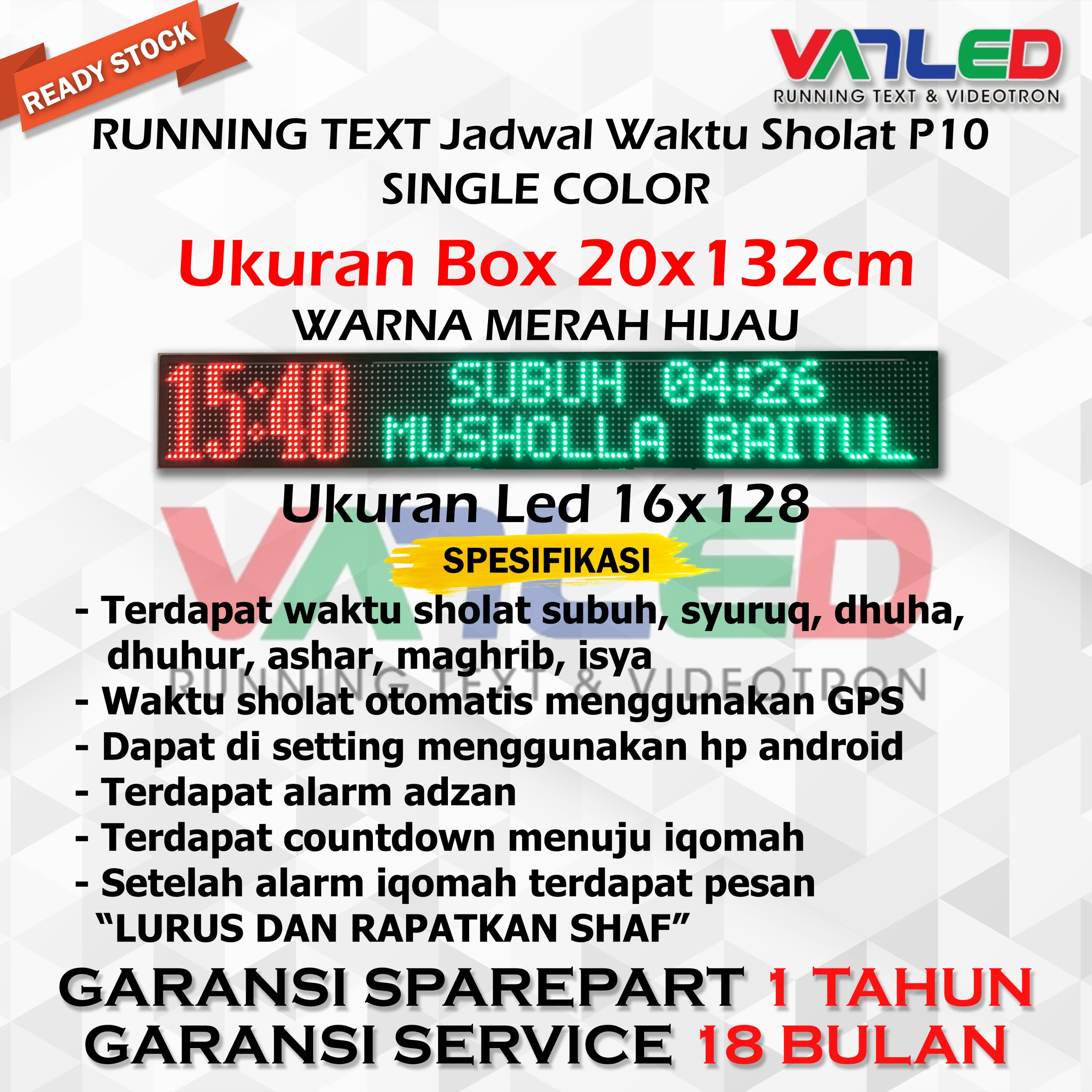 Produk Terkait Jam Sholat Masjid Running Text JWS Jadwal Shalat Solat Digital Masjid P10 Single Color 16X128 Pixel 20X132 Cm Tartil